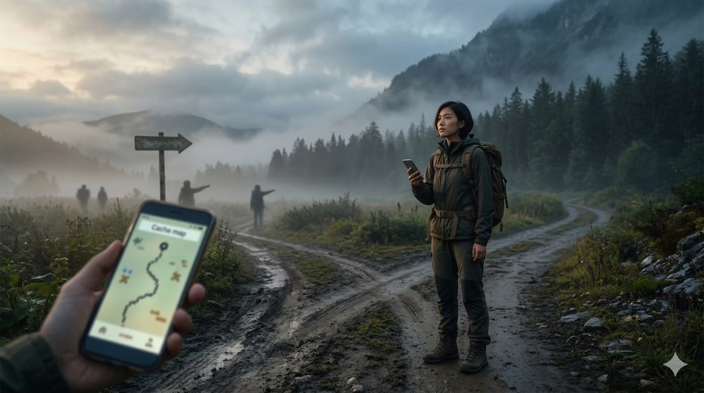 今天去门头沟爬山,计划从圈门出发,走京西古道,翻山越岭最终在潭柘寺下山。全程大概15公里,是一条精心挑选的曲折徒步路线。但计划赶不上变化。进山没多久,手机信号就彻底消失了。导航软件上界面放大后也看不见细腻小路了,只剩下一个大致的缓存底图,和一个在上面缓缓移动的GPS小蓝点。